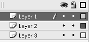 Выделяем облако на втором слое, нажимаем Ctrl+C (для копирования), создаем новый слой (третий), для этого выбираем Insert>Timeline>Layer, и перемещаем его вниз, под первый и второй слой.