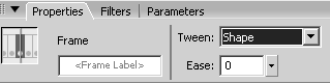 Выделите любой кадр между 1 и 20 (например десятый) и перейдите в панель Properties. Из раскрывающегося списка Tween выберите Shape.