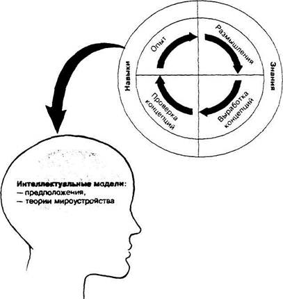 Интеллектуальные модели представляют собой глубоко укоренившиеся образы окружающей действительности, но образы не пассивные, поскольку наши умы — вовсе не статичные «платы памяти». Наш ум не только формируется опытом, но и формирует наш опыт. Не только обороты колеса обучения создают интеллектуальные модели, но и сами эти модели определяют причины и сроки поворота колеса и темпы его вращения.