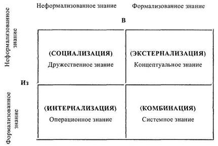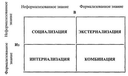 Нонака и Такеучи утверждают, что существуют четыре способа трансформации формализованного и неформализованного знания в организации: