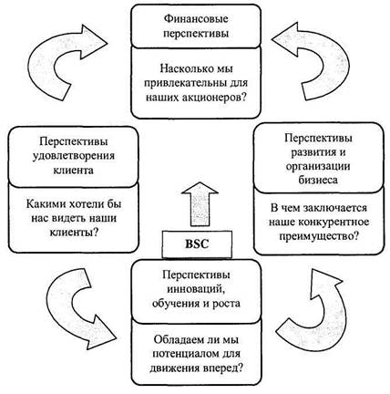 Идея сбалансированной системы показателей (ССП) отвечала желаниям менеджмента обрести взвешенный набор монетарных и немонетарных показателей для внутрифирменных управленческих целей. Новая система направлена прежде всего на увязку показателей в денежном выражении с операционными измерителями таких аспектов деятельности предприятия, как удовлетворенность клиента, внутрифирменные хозяйственные процессы, инновационная активность, меры по улучшению финансовых результатов (рис. 8.7).