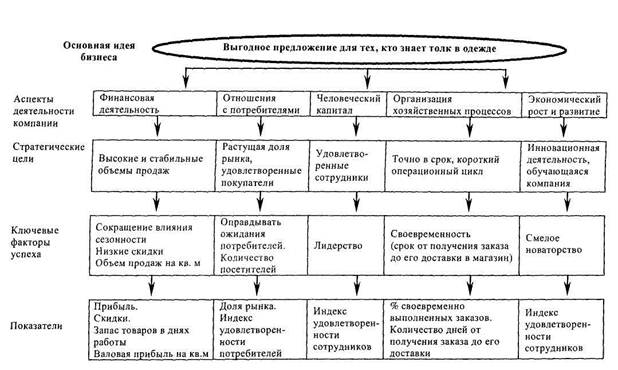 ♦ четыре основных аспекта (потребительский, хозяйственный, инновационный и финансовый) образуют всеохватывающую схему для «проводки» сверху вниз стратегии предприятия по всем его иерархическим уровням;