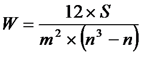 Особенностью применения наиболее распространенного метода ранжирования является присущий ему субъективизм, а также явление конформизма – влияние преобладающего в группе суждения на мнение эксперта. Для установления степени согласованности мнений экспертов применим ранговый коэффициент корреляции – коэффициент конкордации (W), вычисляемый по формуле: