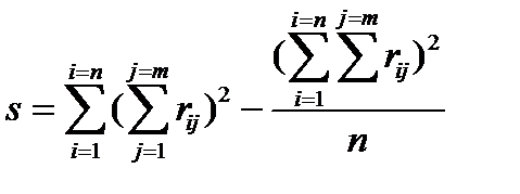 S – отклонение суммы квадратов рангов от их средней, определяется по формуле:
