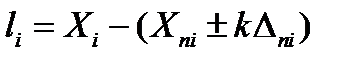 Интервал, определяемый по формуле (14.1), на контрольной карте качества (рис. 13.7) отображен в виде коридора допустимых отклонений, ограниченных верхним и нижним контрольными пределами, в рамках которого качество продукции не изменяется. Отклонение от границ «коридора» (превышение или снижение) i- го показателя качества идентифицировано как несоответствие, и вычисляется как абсолютная величина по формуле: