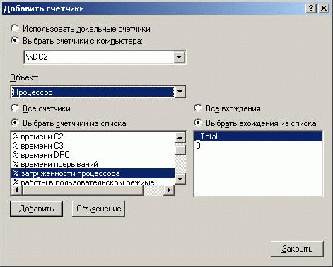 Нажатием кнопки со знаком "+" на панели инструментов можно добавить другие счетчики, в том числе полученные с других компьютеров сети (рис. 16.20):