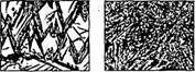 По морфологии мартенсит разделяют на пластинчатый и реечный. Пластинчатый мартенсит состоит из широких и тонких пластин, которые на шлифе имеют вид игл, расположенных параллельно друг другу или под углом (рис. 3.6, в). Он характерен для высокоуглеродистых сталей. Чем мельче зерна исходного аустёнита, тем мельче пластины мартенсита, образующиеся из него. Реечный мартенсит наблюдается в закаленных низко- и среднеуглеродистых сталях. Кристаллы такого мартенсита имеют вид тонких реек, собранных в пакеты. В одном зерне аустёнита может быть несколько таких пакетов.