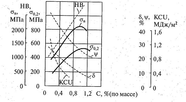 Рис. 5.1. Влияние углерода на механические свойства стали
