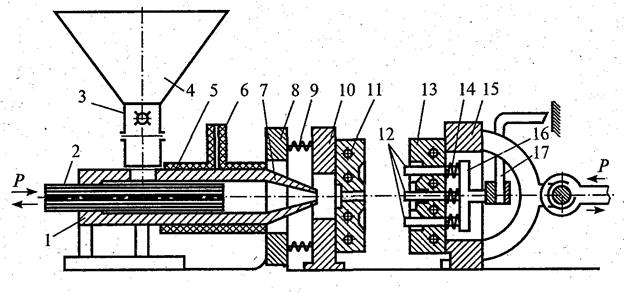 Рис. 9.5. Схема пресс-формы для экструзии термореактивных