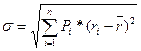 Стандартное отклонение σ или корень из дисперсии рассчитывается по следующей формуле: