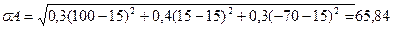А = 0,3*100+0,4*15+0,3(-70)=30+6-21=15