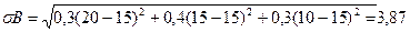 В = 0,3*20+0,4*15+0,3*10=6+6+3=15