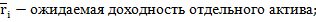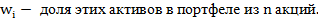 Ожидаемая доходность портфеля ценных бумаг это средневзвешенное значение ожидаемых доходностей отдельных активов, входящих в портфель; при этом их веса - это доли общей суммы инвестиций в портфель (часть всего портфеля) вложенные в соответствующие активы:
