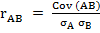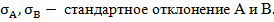 Величину ковариации обычно оказывается довольно сложно интерпретировать, и поэтому для измерения степени совместного изменения переменных чаще используется другой показатель - коэффициент корреляции (correlation coefficient). Коэффициент корреляции стандартизует ковариантность при делении на произведение, что облегчает сравнения при применении аналогичной шкалы. Коэффициент корреляции (rАВ) вычисляется для переменных следующим образом:
