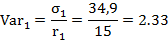 Коэффициента вариаций портфеля ( VarАВ) рассчитывается как отношение стандартного отклонения портфеля к ожидаемой доходности портфеля: