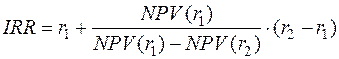 Обычно для нахождения критерия IRR используют формулу линейной интерполяции:
