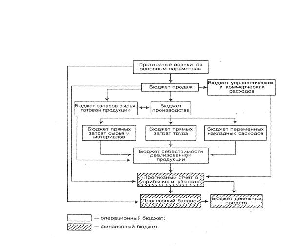 С позиции количественных оценок планирование текущей деятельности заключается в построении так называемого генерального бюджета (master budget), представляющего собой систему взаимосвязанных операционных и финансовых бюджетов (рис. 1).