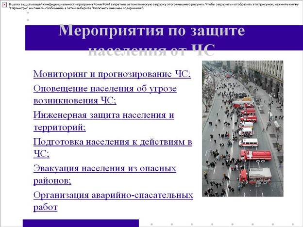 25.Приведён официальный перечень мероприятий по защите населения. Дайте характеристику и раскройте общее содержание каждого из них