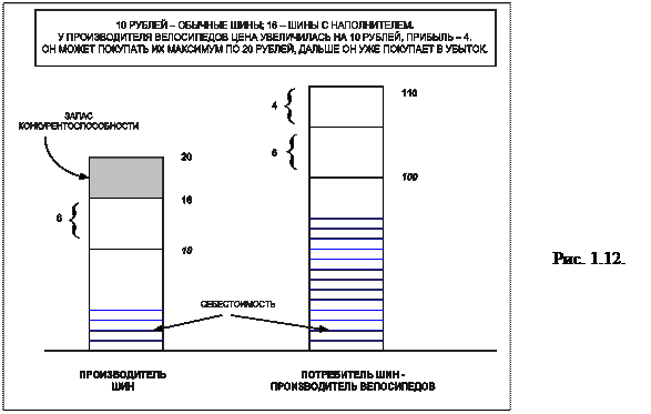 Для потребителя неоплаченная часть потребительской ценности равна полученной от использования товара дополнительной прибыли (в примере на рис. 1.12 она составляет 4 рубля).