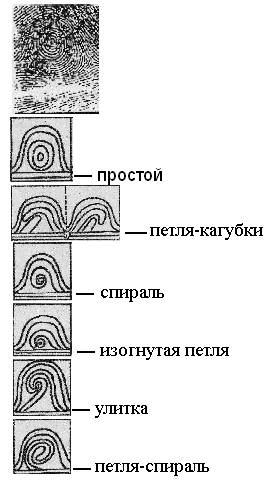 Петлевой узор — линия идет от одного края подушечки к другому, делает там поворот и возвращается обратно. Концы линии называют ножками петли, закругленную часть — головкой петли. Петлевые узоры делятся на: