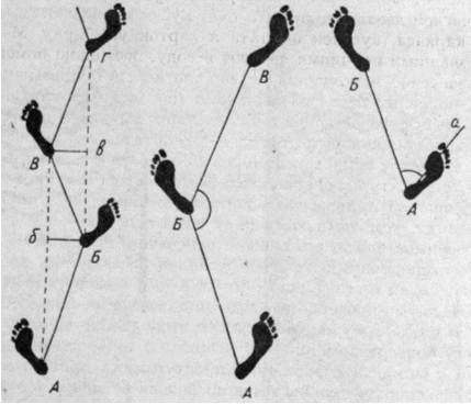 На рис. 5.4 показана дорожка следов ног, где: