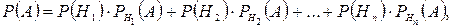 Вероятность события А, которое может наступить лишь при появлении одного из несовместных событий (гипотез) H 1, H 2, …, H n образующих полную группу, равна сумме произведений вероятностей каждой из гипотез на соответствующую условную вероятность события A: