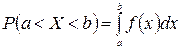 Вероятность того, что непрерывная случайная величина X примет значение, принадлежащее интервалу (a, b),определяется равенством: