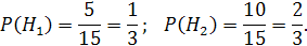 6) Имеются три урны: в первой 5 белых и 10 черных шаров; во второй 9 белых и 6 черных шаров; в третьей урне 15 черных шаров (белых шаров нет). Из наугад выбранной урны достали один шар. Этот шар оказался черным. Найти вероятность того, что шар достали из второй урны.