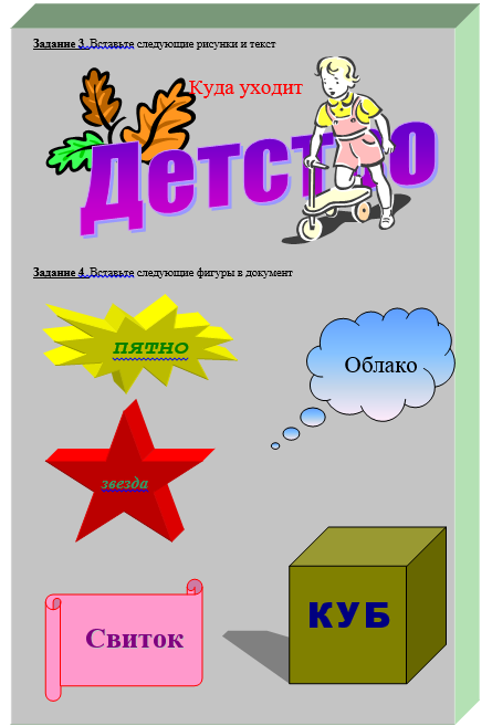 если задание содержит несколько пунктов, то в свободных ячейках листа результатов этого задания должны содержаться соответствующие подписи-пояснения.