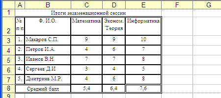 Таблица. Итоги экзаменационной сессии (ее можно просто скопировать на Лист Задание 3 с Листа Задание 2) имеет следующий вид: