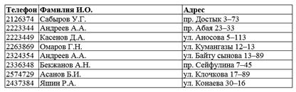· владельцев телефонов, фамилии которых начинаются на букву А;