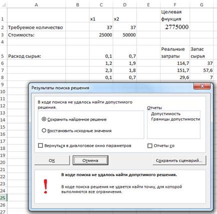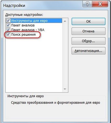 После ввода всех данных и задания параметров нажать кнопку «Найти решение».