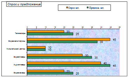 3.3. Сделайте изменения в столбцах «Спрос» и «Предлож.» таблицы документа Excel. Отметьте, что в документе Word произойдут изменения только во внедренной диаграмме.