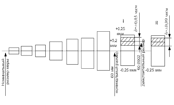 Поэтому при пользовании концевыми мерами, которые имеют разряд, размер берут не только по номинальному значению, но и учитывают действительное отклонение, приведенное в аттестации.