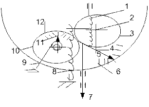 Для обеспечения отсчета при перемещении измерительного стержня в обоих направлениях используют вспомогательное колесо 10, находящееся под воздействием пружинного устройства 9, обеспечивающее зацепление всех зубчатых передач только по одним профилям зубьев вне зависимости от направления перемещения измерительного стержня. Один конец пружины закреплен на колесе 10, а второй конец закреплен неподвижно на корпусе механизма индикатора. В индикаторе предусмотрена винтовая пружина 8, один конец который укреплен на измерительном стержне, а другой – на корпусе индикатора.
