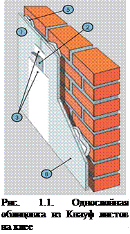 Однослойная облицовка из Кнауф листов на клее приведена на рис. 1.1 (номера позиций указаны в табл.1.1).