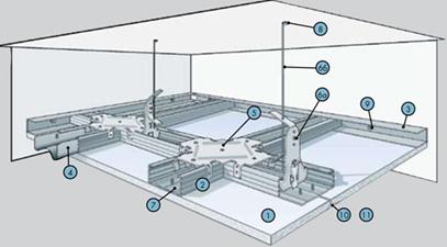 Рис. 1.17. Подвесной потолок из Аквапанели внутренней на двухуровневом металлическом каркасе