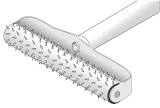 С одной стороны гипсокартонный лист прокатывается игольчатым валиком (рис. 13). Именно эта сторона впоследствии будет деформироваться. Для выпуклых форм она будет внутренней, для вогнутых – внешней. Далее лист наколотой стороной вверх укладывается на прокладки и смачивается водой, при этом необходимо избегать попадания воды на не проколотую сторону листа. Если это произойдет, возможен разрыв гипсовой панели во время изгиба.
