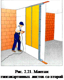 8. Установить и закрепить гипсокартонные листы с другой стороны каркаса аналогично п.6 (рис. 2.21).