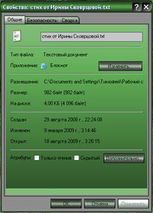 Меняются атрибуты файла с помощью контекстного меню файла. Выбрав пункт «свойства», можно увидеть окно, в котором можно узнать всю информацию об этом файле: полное имя файла (будет рассмотрено позже), его имя и тип, значок, дату создания и изменения файла…