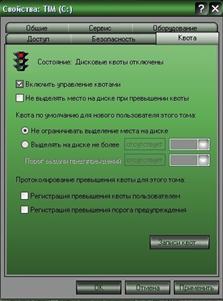 Квотирование дискового пространства. Позволяет накладывать ограничения для некоторых пользователей на использование дискового пространства. Администратор задает пользователю то количество информации, которое он может использовать на определенном диске. После того, как пользователь превысил этот лимит, пользователю либо выдается сообщение о превышении, либо запись на диск просто невозможна.
