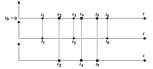 Для описания случайных законов в теории массового обслуживания вводится в рассмотрение модель потоков событий. Потоком событий называется последовательность событий, следующих одно за другим в случайные моменты времени