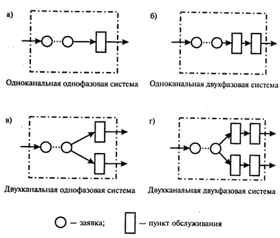 На рис. 1 приведены системы обслуживания различной конфигурации.
