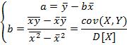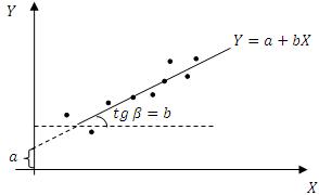 соответствует отрезку прямой, отсекаемому линией регрессии при пересечении с осью ординат, параметр b определяет наклон линии регрессии к оси абсцисс. При этом параметр a традиционно принято называть свободным членом регрессии, а параметр