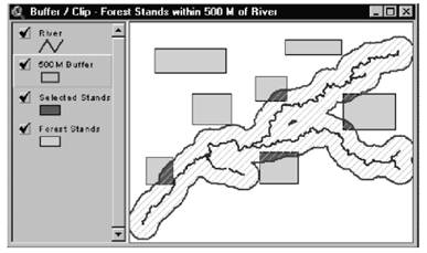Далее мы представим детальное рассмотрение некоторых наиболее ценных функций анализа пространственного расположения объектов, так как функции обработки описательной информации в ГИС (сортировка, группировка, поиск значений, калькуляция, статистика и пр.) схожи с функциями, используемыми в обычных СУБД.