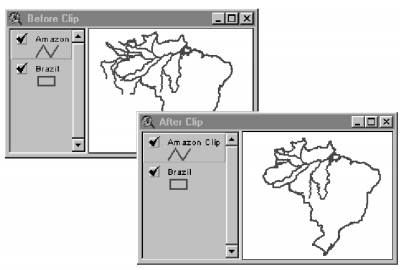 Операция наложения двух полигональных слоев (polygon-on-polygon) методом вырезания применяется для вырезания части одного слоя, используя для этого другой слой в качестве формы. Эта операция создает новый слой посредством наложения объектов двух слоев. Один из этих слоев должен быть полигонального типа и он используется для определения области отсечения. В полученном слое сохраняют только те объекты исходного слоя, которые попадают в область вырезания. Объектами исходного слоя могут быть любые объекты (полигоны, линии или точки). Объекты нового слоя будут одного типа с объектами исходного слоя. В итоге получают объективную атрибутивную таблицу для нового слоя, которая содержит поля, аналогичные имеющимся полям в атрибутивной таблице исходного слоя.