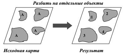 - уничтожения границ одноименных классов полигонального слоя с порождением нового слоя;