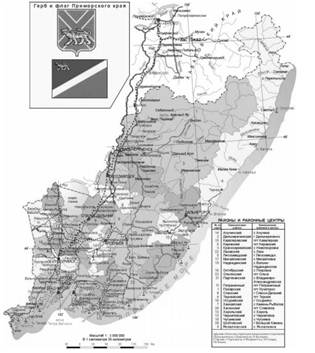Рис.. Районы и районные центры Приморского края.