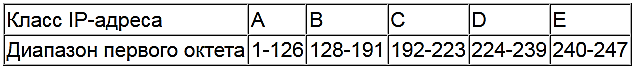 Помимо явного задания масок часто по традиции используют классы IP-адресов, которые называются A, B и C. Класс IP-адреса при этом распознается по его старшему байту. Обычно, если в этом нет особой необходимости, используют классовыеадреса, т.е. маски задаются не произвольно, а в соответствии с первым байтом IP-адреса.