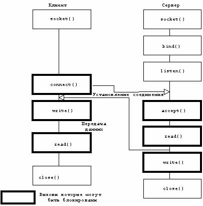 Некоторые вызовы способные заблокировать программу: Клиент: